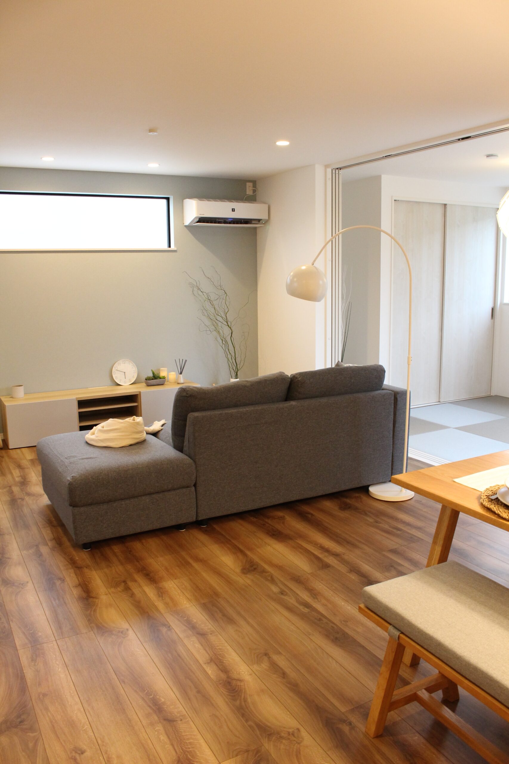 注文住宅のみに取り組んできたREN-STYLE初の規格住宅。今までのノウハウやお客さまの傾向をふまえてさらに変化させたREN-STYLE editionをプランニングしました。リビングと連結した和室は、フルオープンにしておくことも引き戸で独立させることも可能。6帖サイズの大型ベランダへは主寝室からアクセスでき、ウォークインクローゼットとは別に設けたファミリークローゼットは、何かと重宝しそうです。