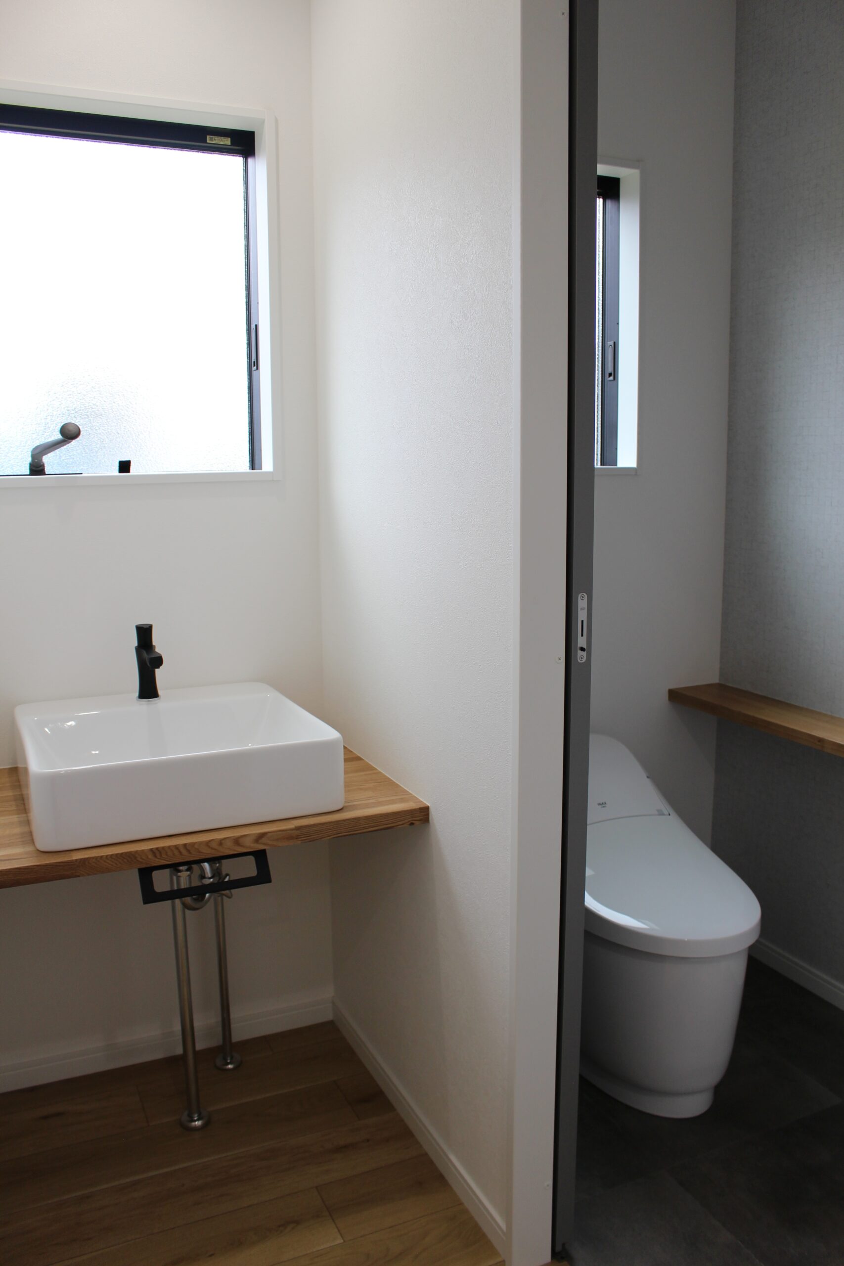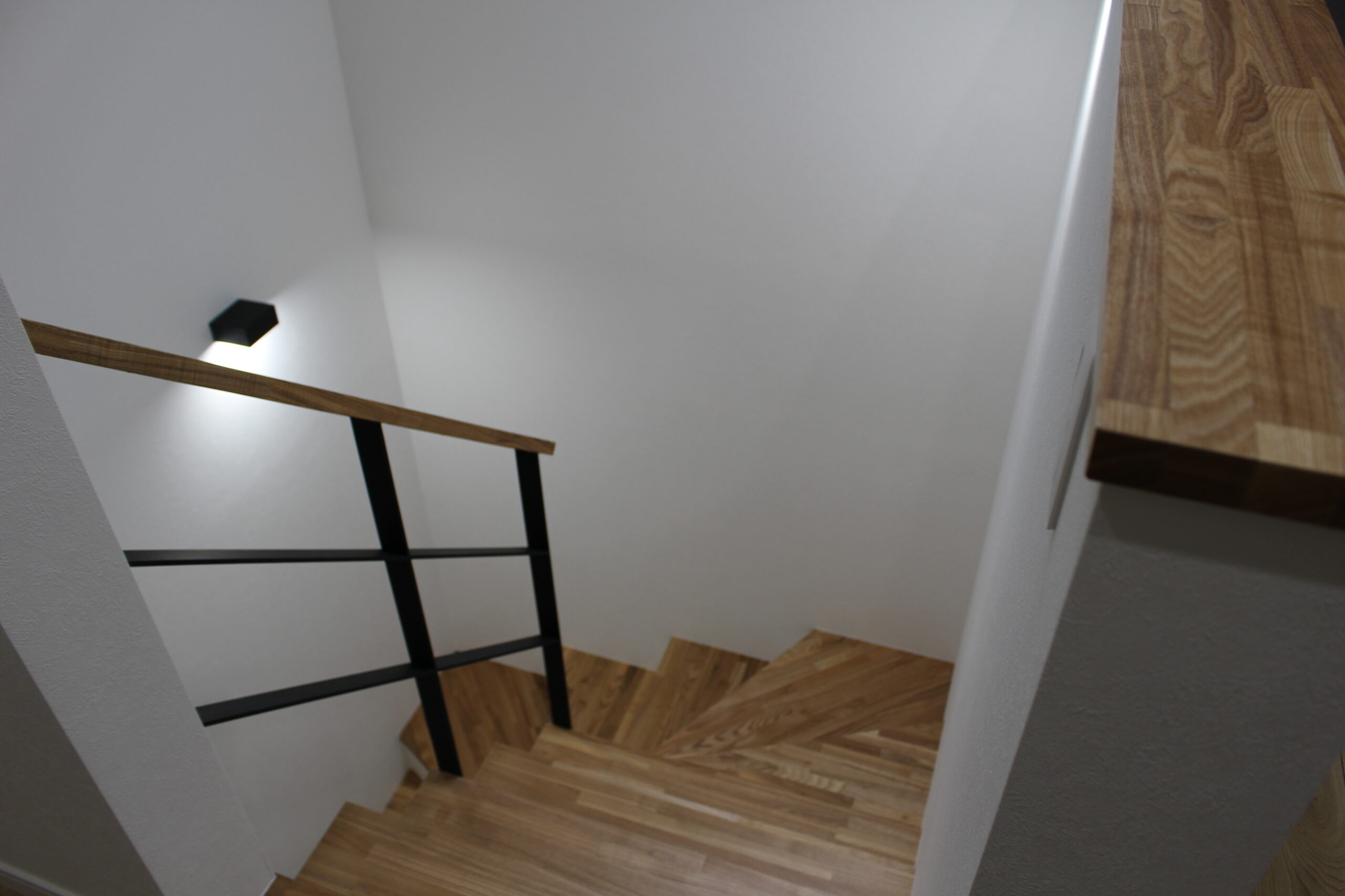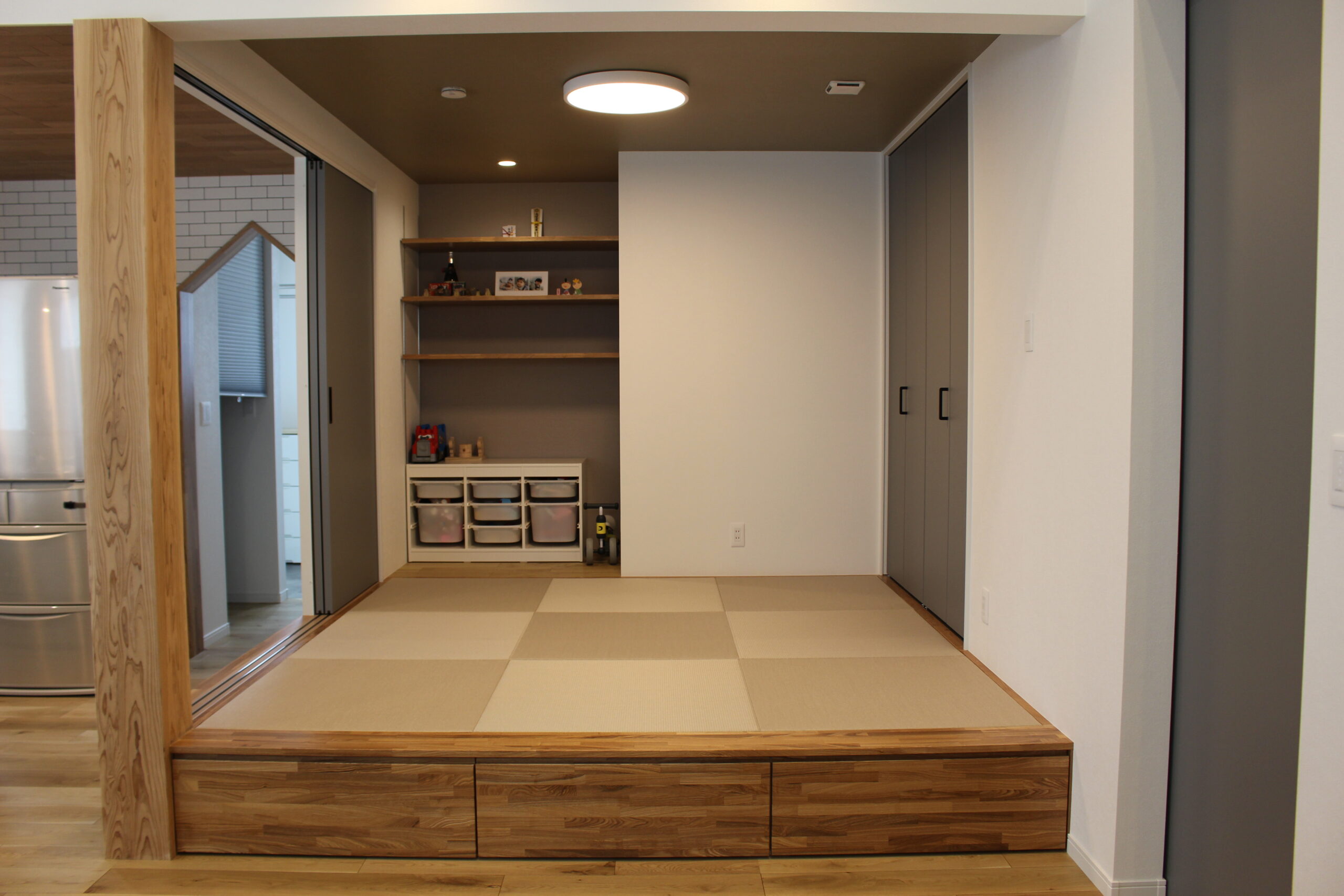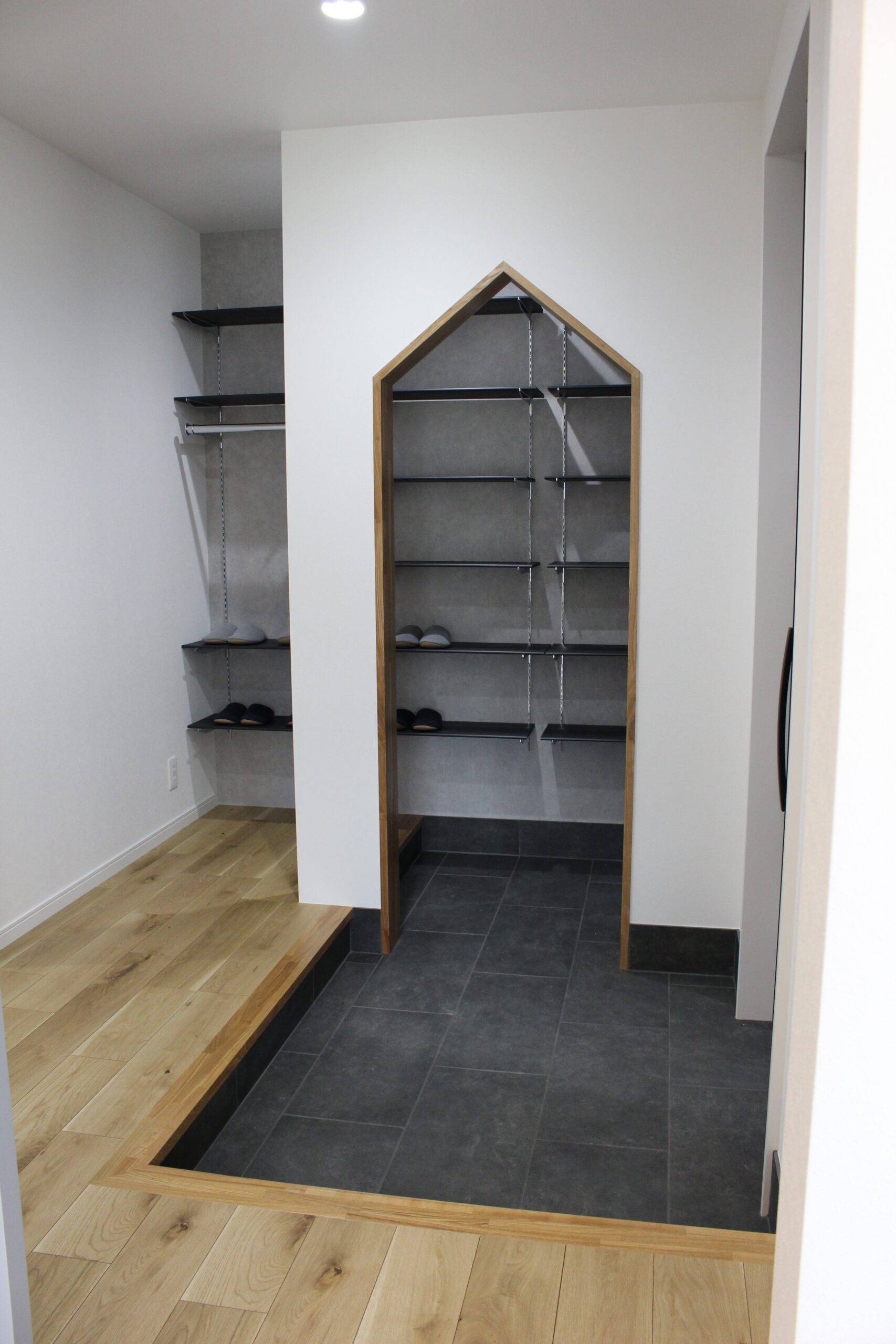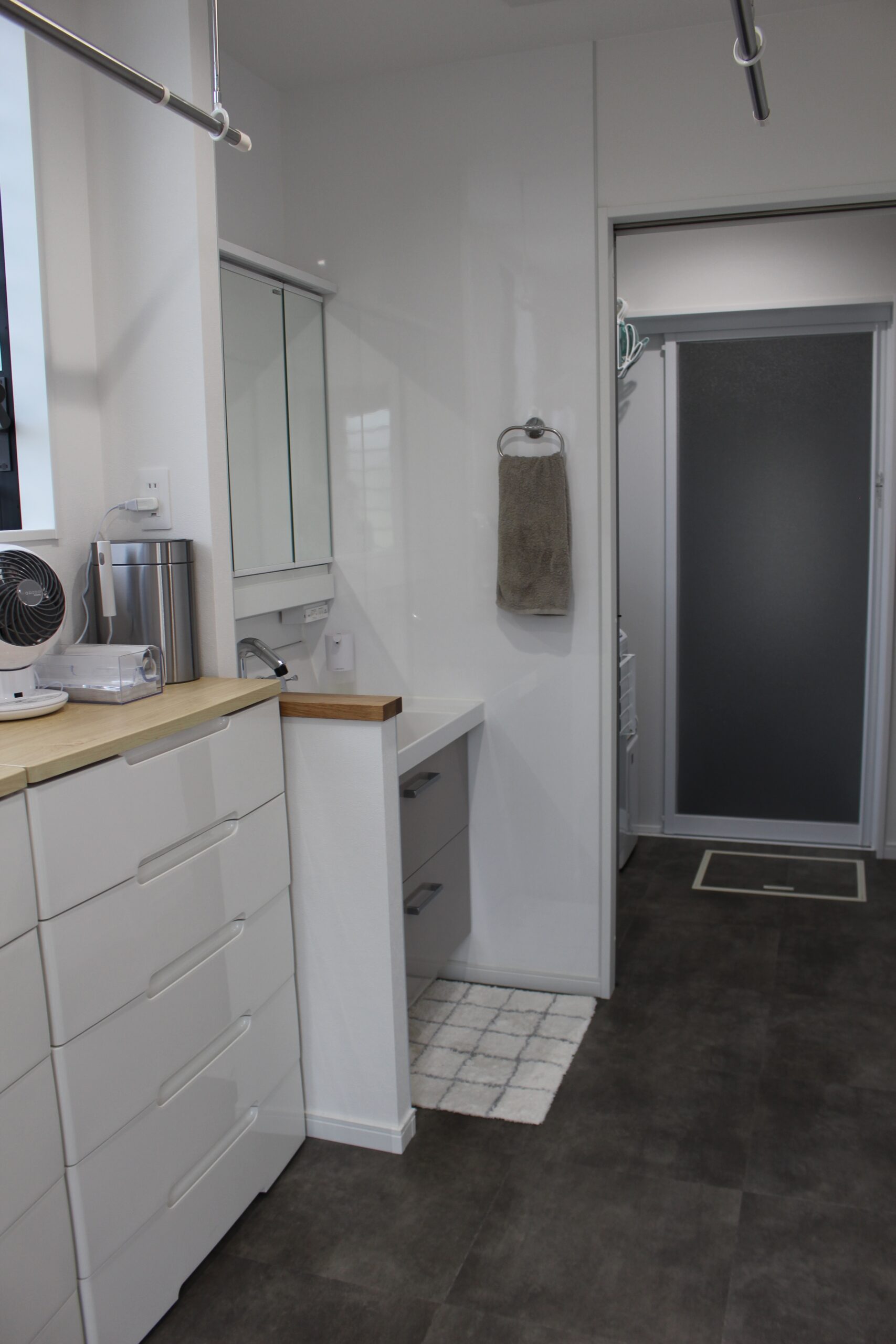 道路沿いに細長い敷地の形状を活かし、周囲からの目線を気にせずにくつろげる空間づくりを目指しました。勾配天井のリビングには機能性バツグンの小上がり和室が連結していて、実際の帖数以上の広がりが感じられます。キッチンから1本の動線でつながるパントリー・サンルーム・脱衣室・浴室は、誰もが憧れる家事ラクプラン。収納上手になってしまう間取りは、毎日の生活を心おだやかなものにしてくれます。
