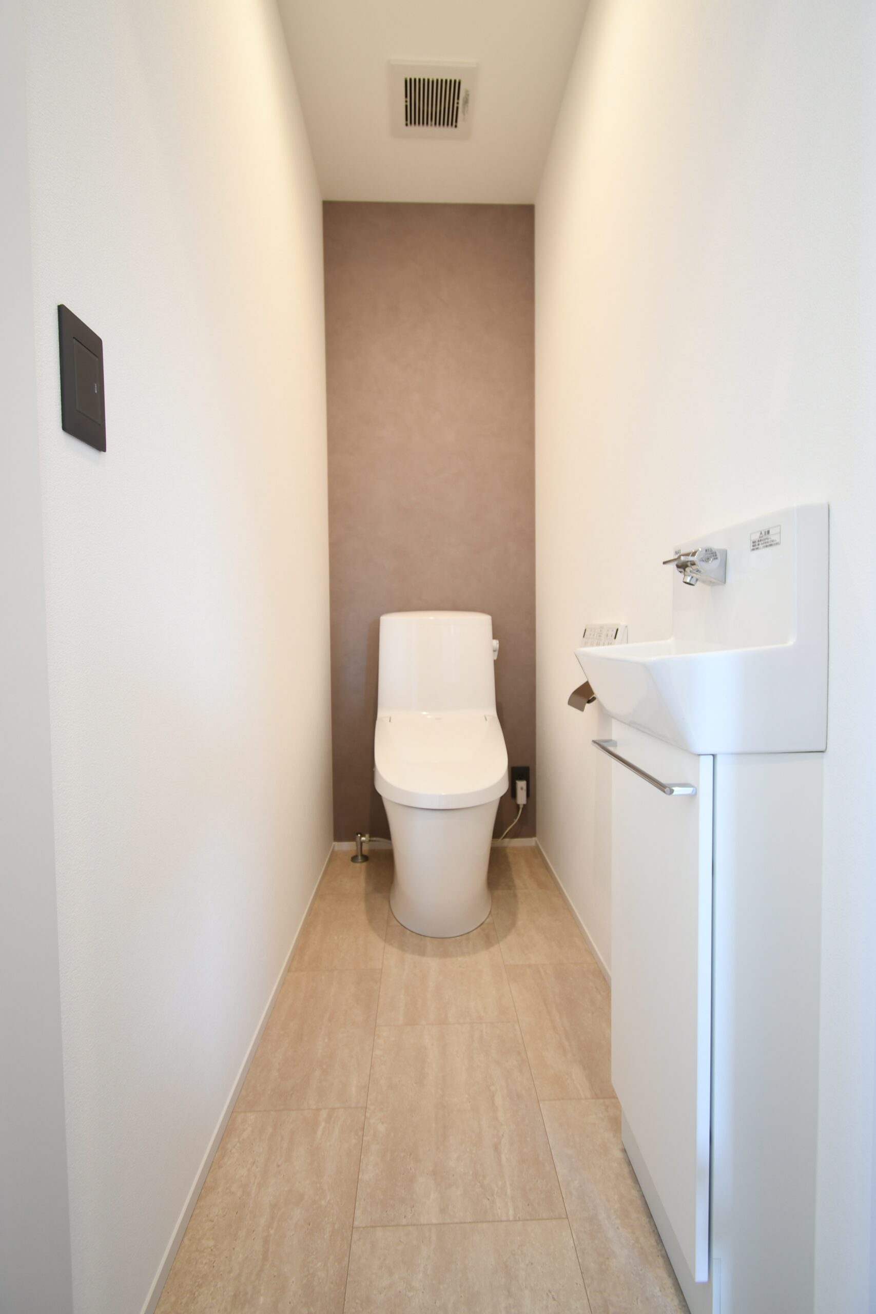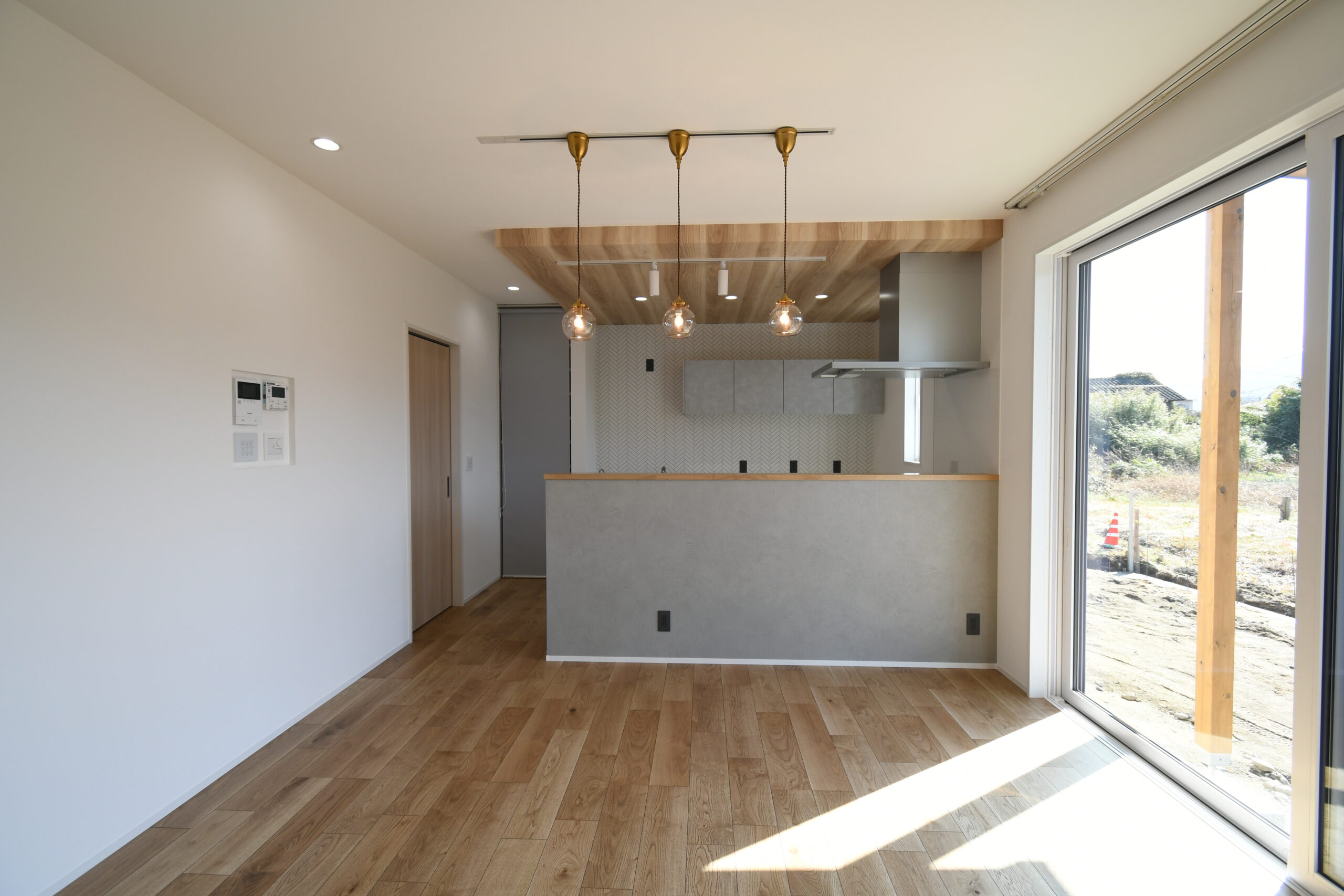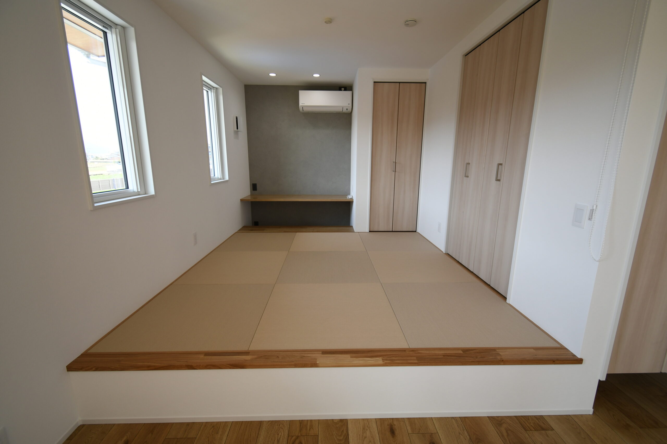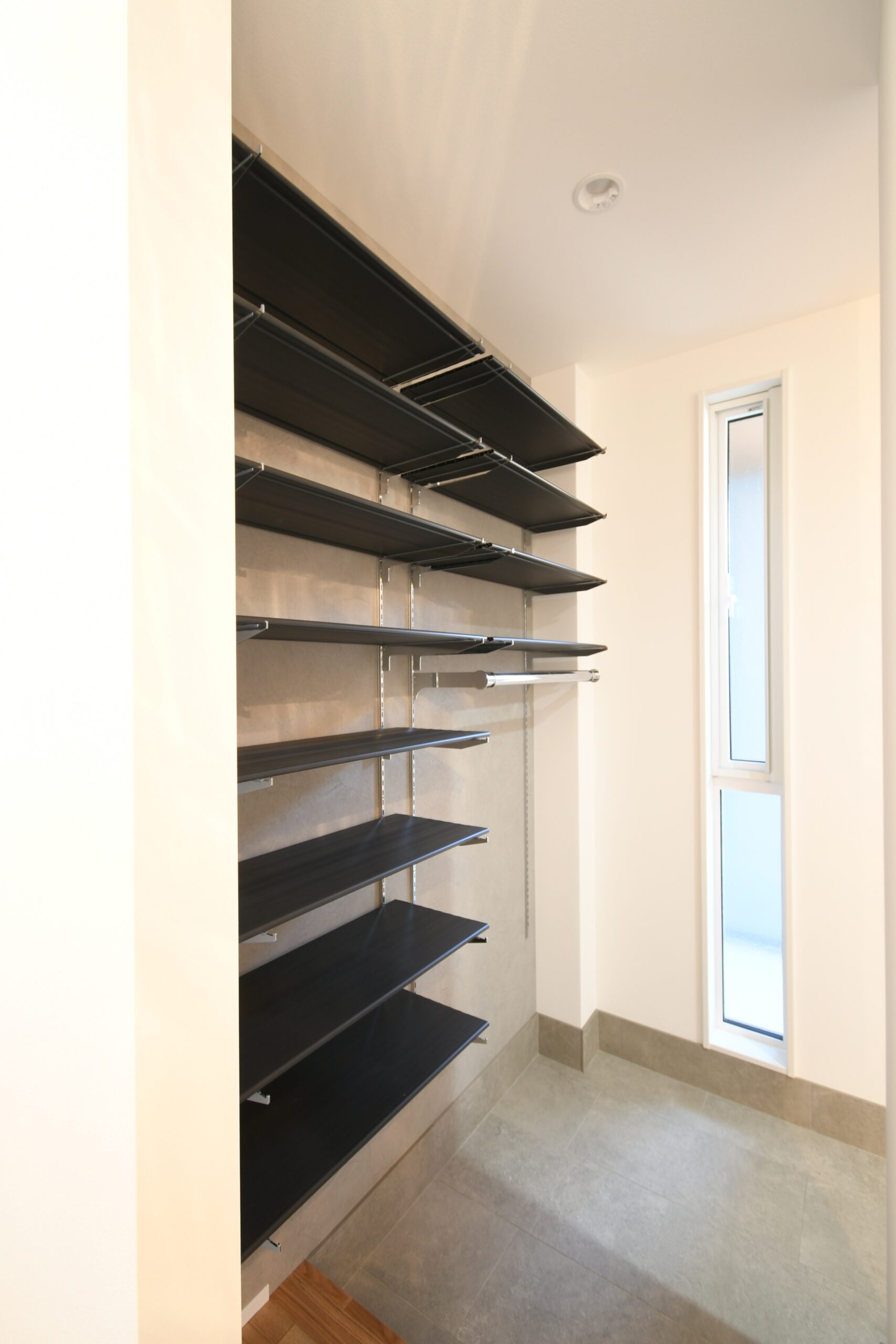 キッチン廻りの回遊動線に、勝手口やあったらいいなのスロップシンクも完備して最強カスタマイズにプランニング。リビング連結の和室は小上がりに、カウンターは掘りごたつ式にと、段差をつけることで圧迫感なく空間を整理しています。玄関ドアが見えないシンプルスタイリッシュな外観は、地形を考慮してお子さんがすぐに飛び出すことのないような安全性とデザイン性を両立。しっかり箱型エントランスで雨の日のお出かけもノーストレスです。