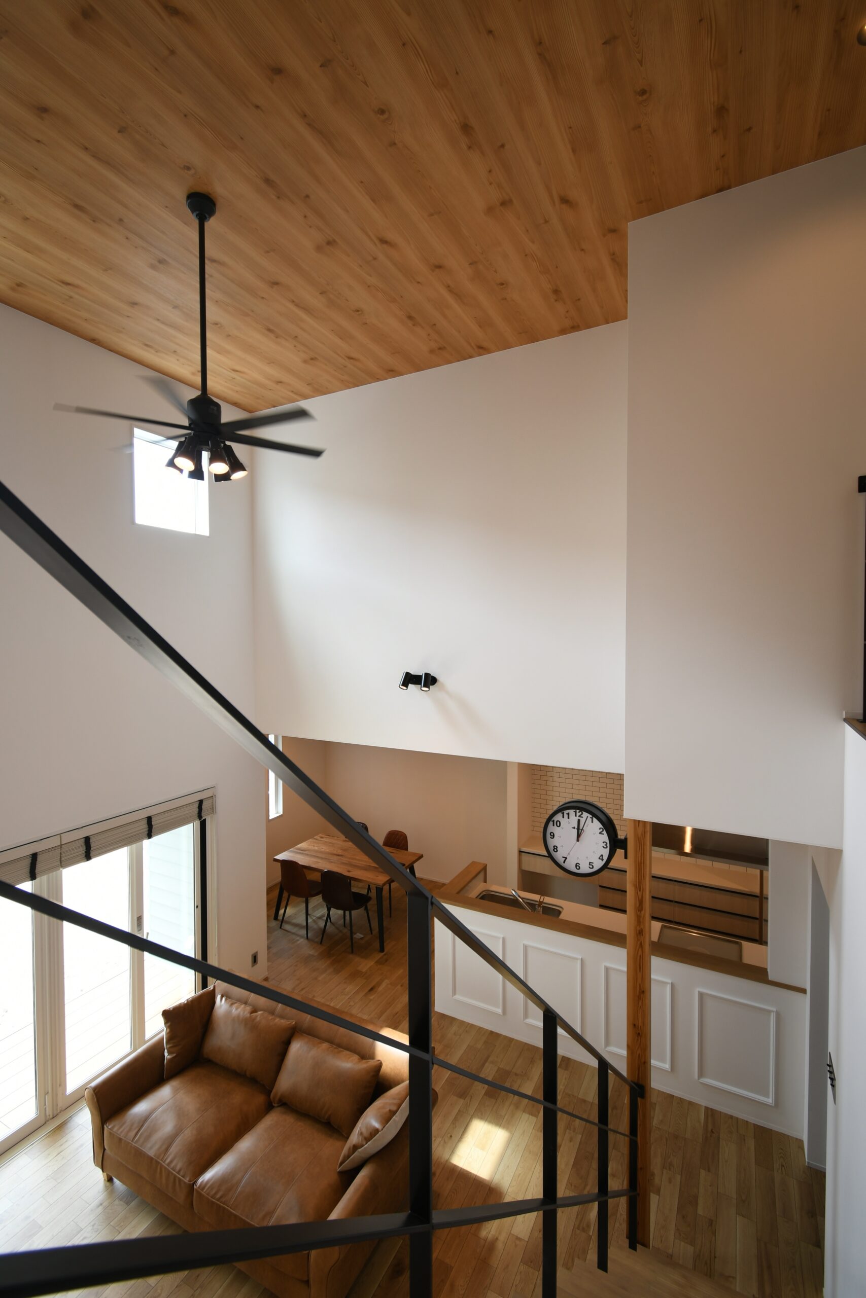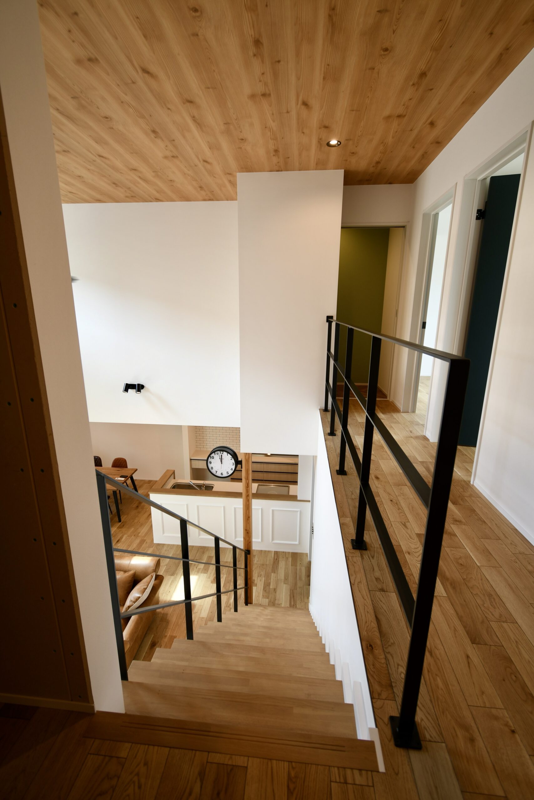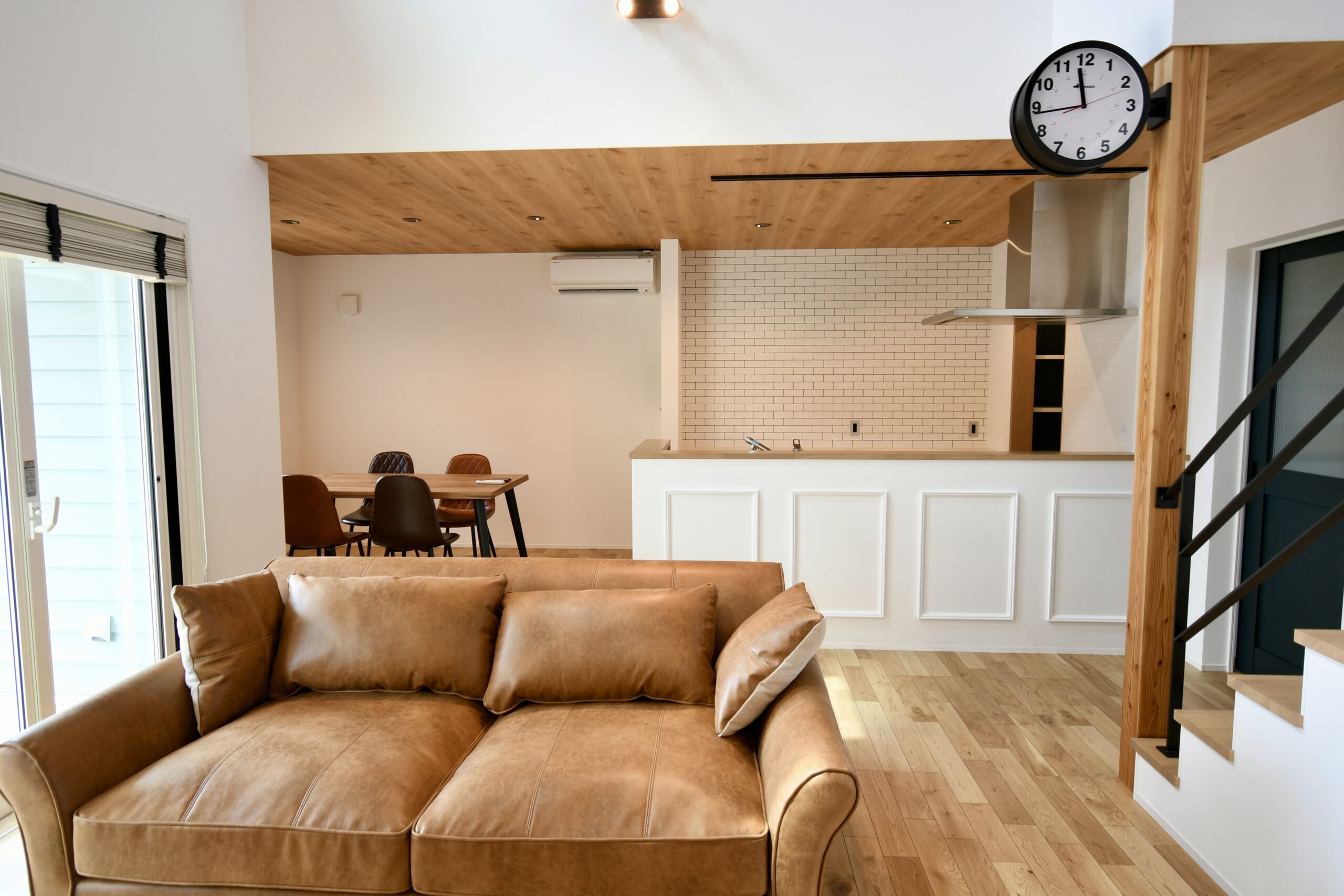 これぞカリフォルニアスタイルな鮮やかグリーンのラップサイディングが印象的なお家です。とってもリラックスなリビングは吹き抜けとオープン階段で『タテ』の抜け感が、ウッドデッキにつながるオープンウィンで屋外と屋内がつながって『ヨコ』の抜け感が〇な空間です。キッチンはリビング側から見えないパントリーや横並びダイニングで家事動線をすっきりスムーズに。ほしい場所にしっかりボリュームの収納スペースがあるので、お家の中もしっかりと片付きます。ネイビーの室内ドアや照明スイッチ、キッチンのモール壁造作など、ご家族のお気に入りをギュッと詰め込んで、毎日がわくわくと楽しい♪そんなお家です。