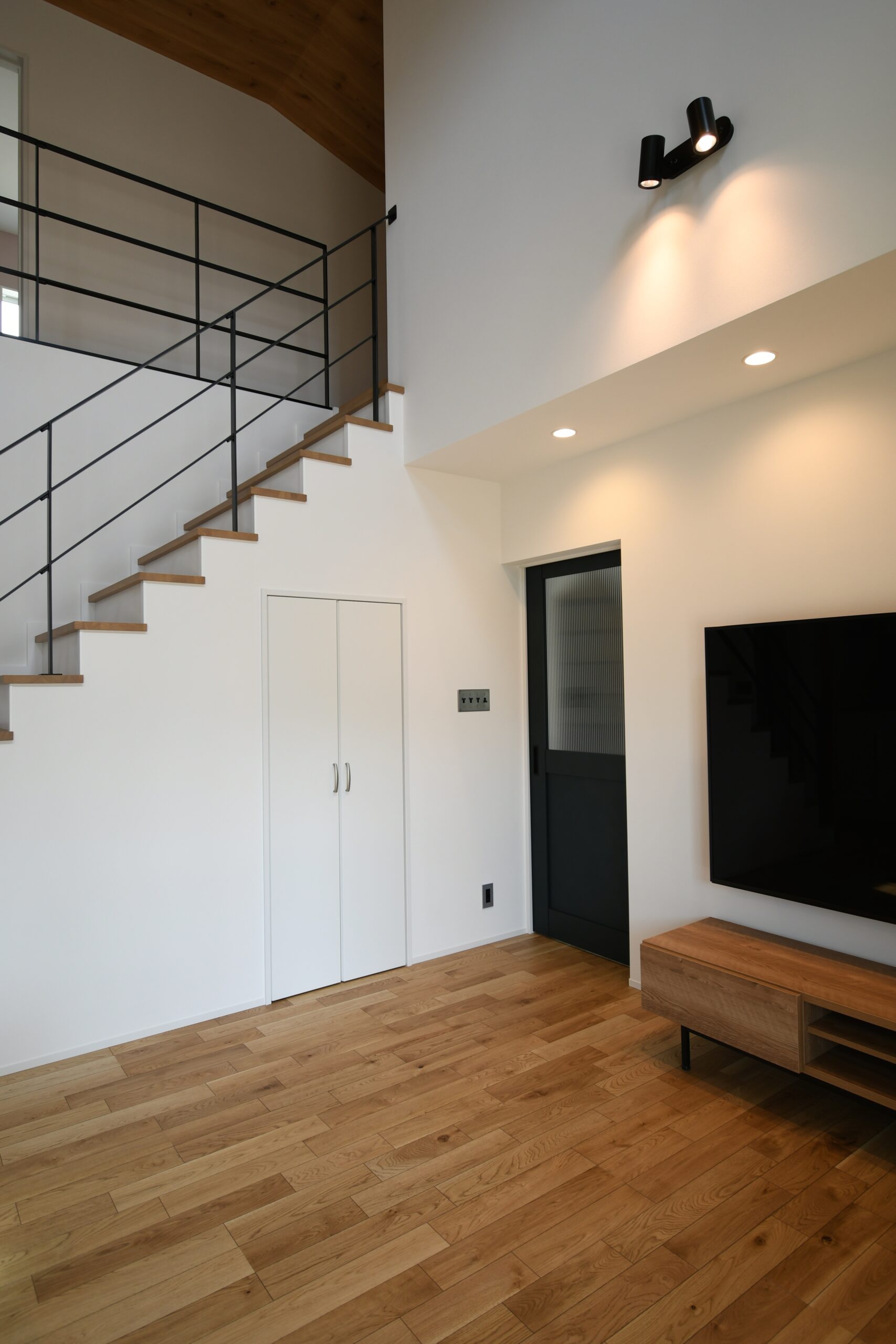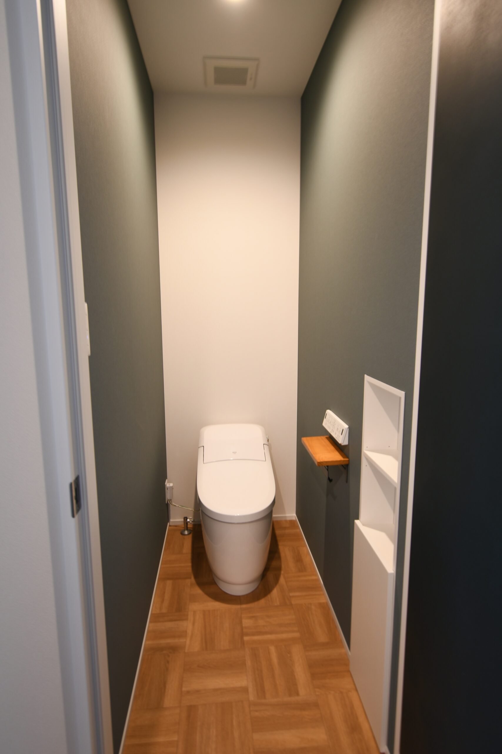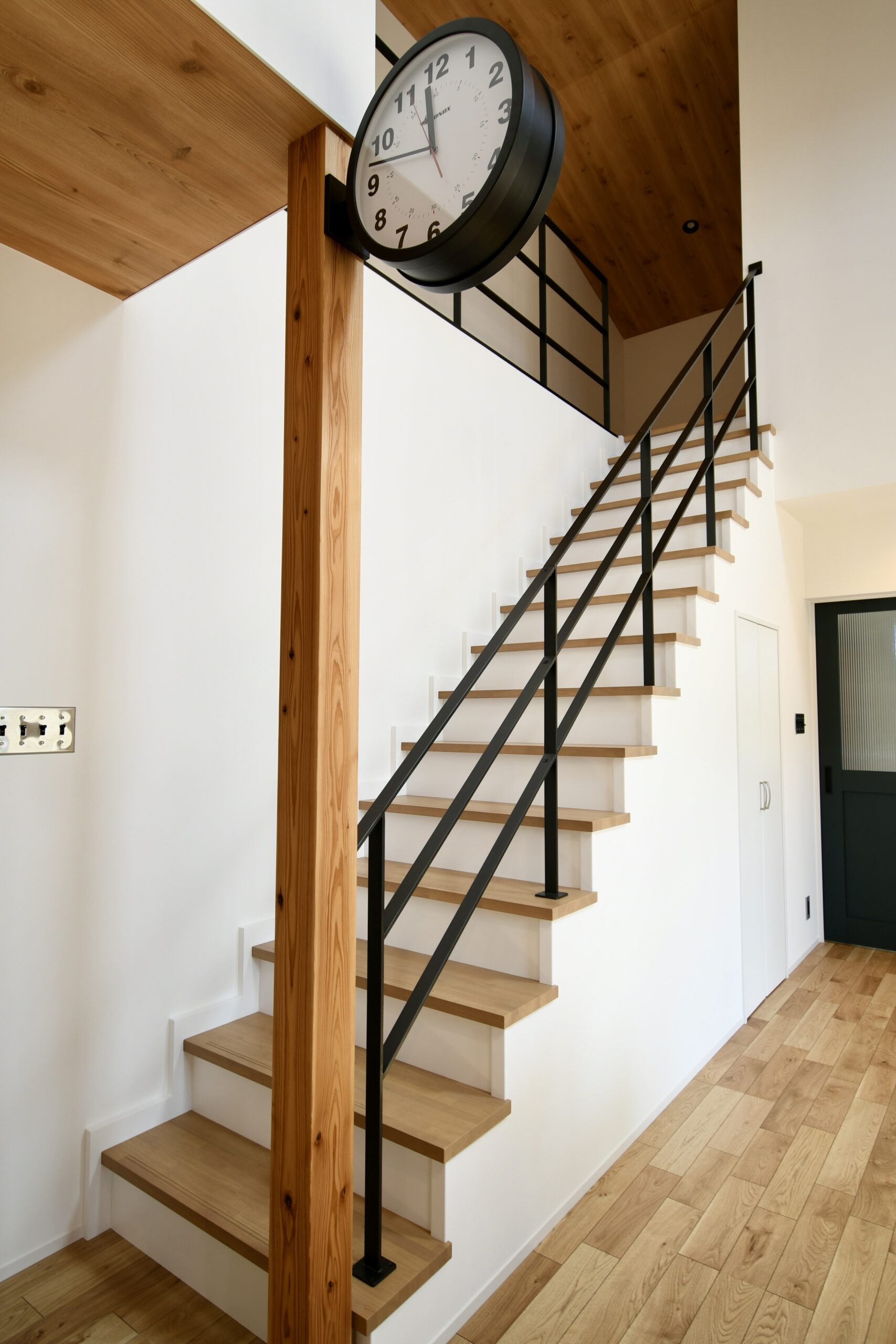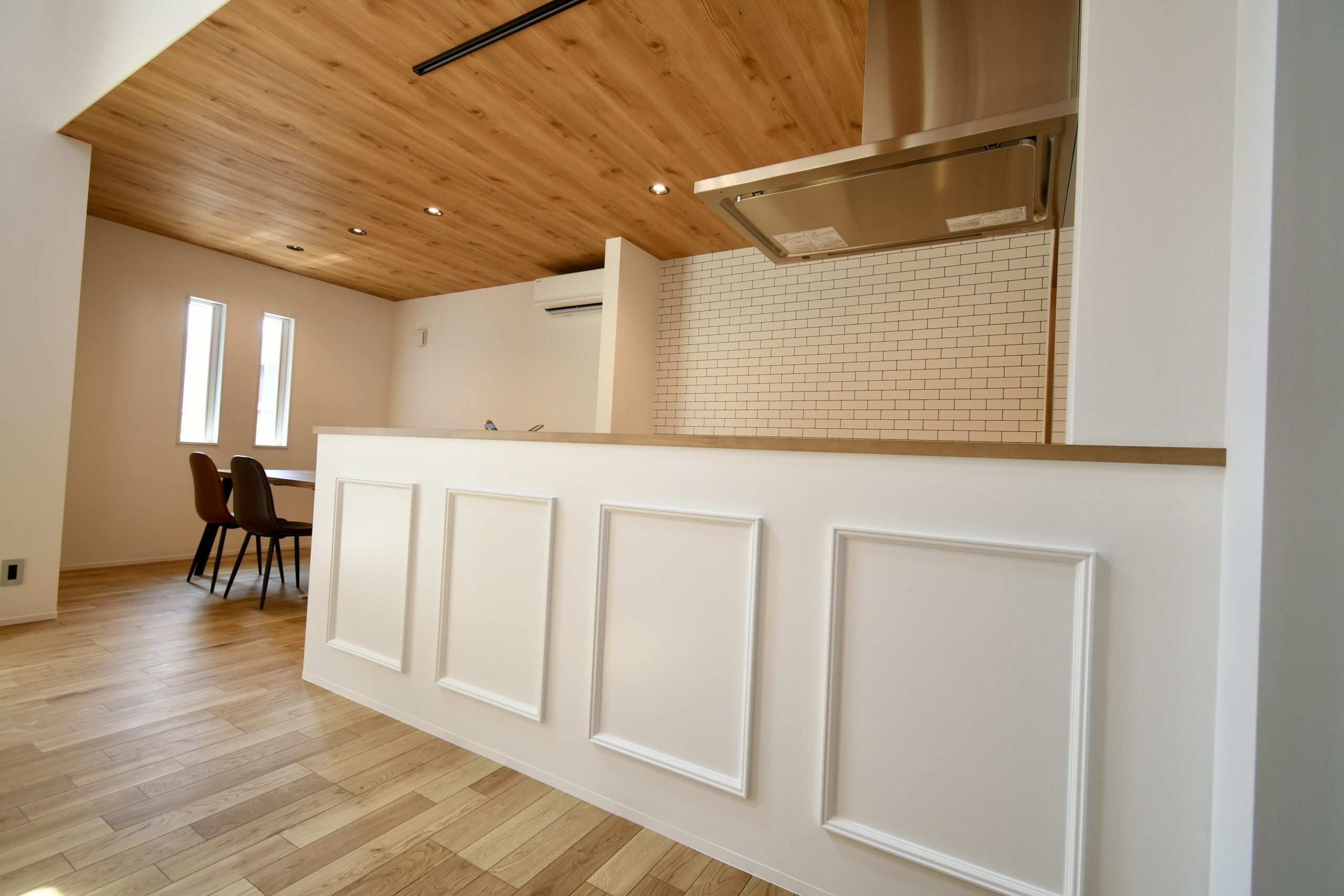 これぞカリフォルニアスタイルな鮮やかグリーンのラップサイディングが印象的なお家です。とってもリラックスなリビングは吹き抜けとオープン階段で『タテ』の抜け感が、ウッドデッキにつながるオープンウィンで屋外と屋内がつながって『ヨコ』の抜け感が〇な空間です。キッチンはリビング側から見えないパントリーや横並びダイニングで家事動線をすっきりスムーズに。ほしい場所にしっかりボリュームの収納スペースがあるので、お家の中もしっかりと片付きます。ネイビーの室内ドアや照明スイッチ、キッチンのモール壁造作など、ご家族のお気に入りをギュッと詰め込んで、毎日がわくわくと楽しい♪そんなお家です。